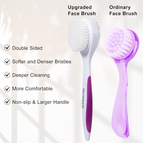 2-in-1 DESIGN: Beomeen face brush has a unique double-sided design,one sided is soft fiber face brush that can deeply clean; The other sided is silicone brush for exfoliating and massaging