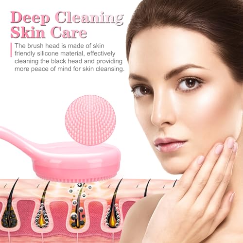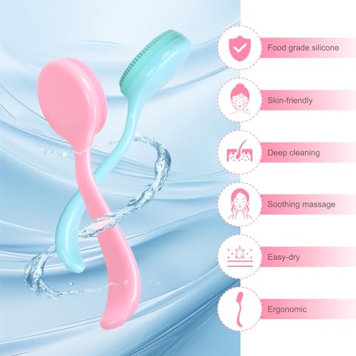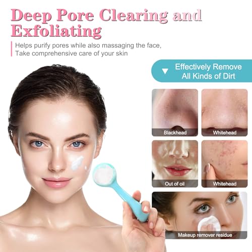 Specification: Silicone Manual Facial Cleansing Brush, NADUSEP 2 Pack Skin Friendly Soft Bristles Waterproof Face Scrubber Exfoliating Brush for Blackheads Whiteheads Makeup Residues Removal (Blue, Pink)