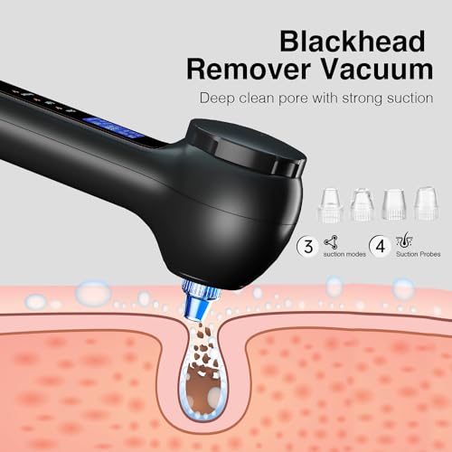 【BLACKHEAD VACUUM REMOVER】Powerful blackhead vacuum suction technology,3 Suction Levels,4 Suction Probes,deep cleansing by effectively removing blackheads, whiteheads, dead skin, grease, and makeup residue