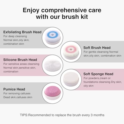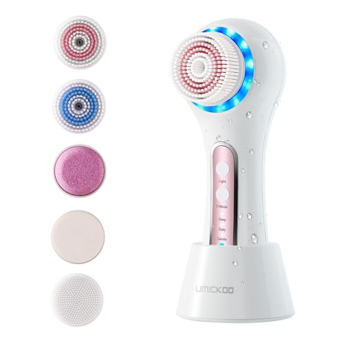 Specification: UMICKOO Face Scrubber Exfoliator,Facial Cleansing Brush Rechargeable IPX7 Waterproof with 5 Brush Heads,Face Spin Brush for Exfoliating, Massaging and Deep Cleansing