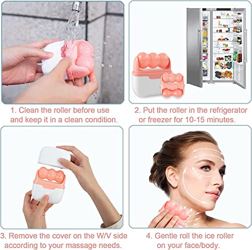 Specification: Deashun 2 in 1 Ice Roller for Face Eye, Face Massager Roller for Eye Puffiness, Reduces Wrinkles, Relief Migraine and Minor Injury, Cold Facial Skin Care Tools Ice Roller (Pink)