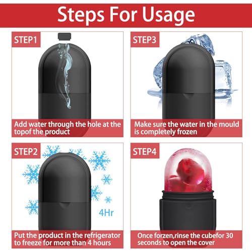 💞【Easy to use】 EASY TO USE: Fill the ice roller massager mold with water. Freeze in refrigerator for more than 4 hours,when using it apply the ice to your skin in 30 second intervals in circular motions. For optimal results, It is recommended to use 1 or 2 times a day.
