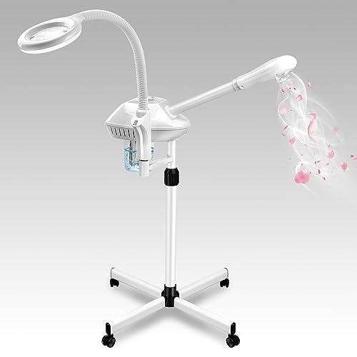 Specification: Chetunju Professional 2 in 1 Facial Steamer for Ozone Humidifier Atomizer Attach 5× Magnifier and Light, Face Steamer Clean Skin Firming Pores and Moisturizing Suitable for a Beauty, Spa, at Home