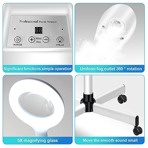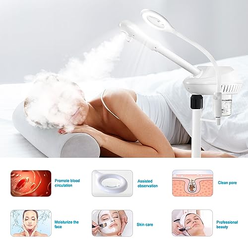 Chetunju Professional 2 in 1 Facial Steamer for Ozone Humidifier Atomizer Attach 5× Magnifier and Light, Face Steamer Clean Skin Firming Pores and Moisturizing Suitable for a Beauty, Spa, at Home