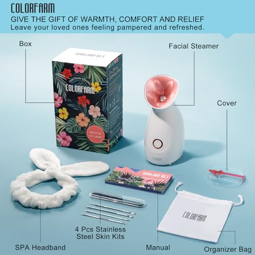 Colorfarm Facial Steamer Nano Ionic: Face Steamer Deep Cleaning Unclogs Pores – Humidifier Hot Mist Home Sauna Spa for Women Men Sinuses Moisturizing