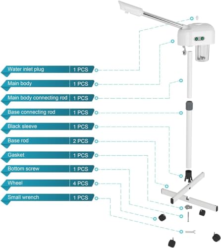 ★ EXQUISITE WORKMANSHIP : Titanium atomizing disc, more foggy, more fine, can extend spraying time. High quality SS pipe, sturdy and durable, no rust. Thicker high capacity water cup, can store 600ml water. The head of the machine is free to rotate 360°. Adjustable height from 38.1″ – 46.4″. Easy moving with universal wheels.