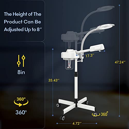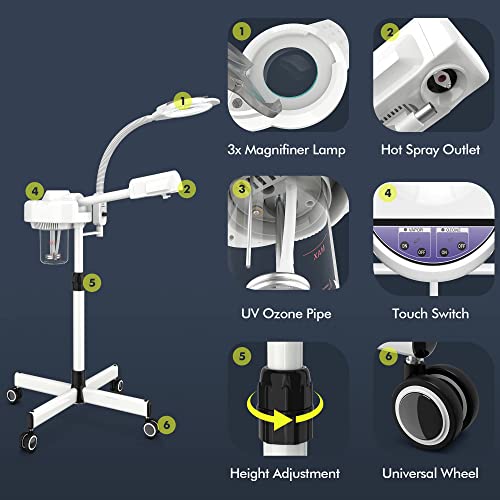 Specification: KINGSTEAM Professional Facial Steamer & Magnifying Lamp 2-in-1 Strong Steam Face Steamer with 3X Magnifying Lamp for Salon, Spa, Estheticians, Ozone Steamer for Flawless Skin