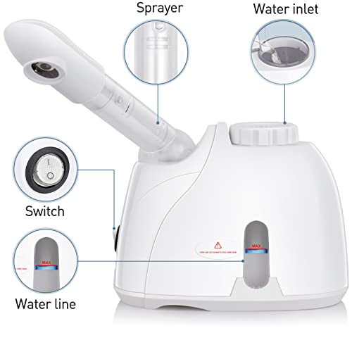 NewWay Facial Steamer with Extendable Arm Steaming Warm Mist Humidifier for Face Spa Sinuses Moisturizing, Homeuse or Salon