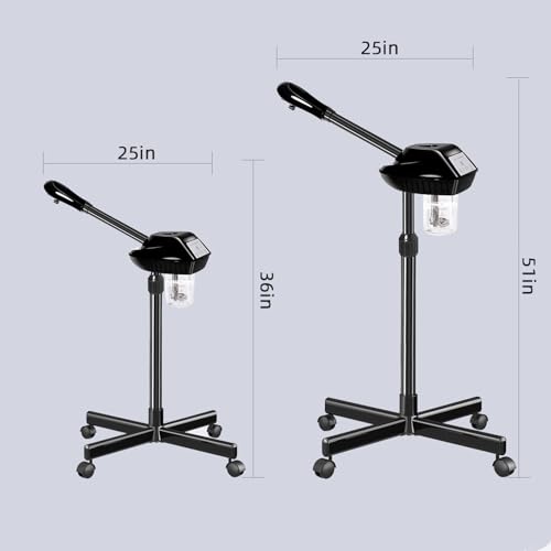 【Facial Steamer Professional】This facial steamer has an upgraded atomizing cartridge, 360°rotatable nozzle, adjustable height from 36-51 Inches, 360°rotatable and smooth wheels. Suit your different needs.