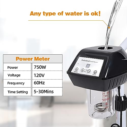 Specification: Takeashine Professional Facial Steamer on Wheels, Ozone Facial Steamer with Time Setting, Stand Facial Steamer Adjustable Height for Spa, Salon and at Home Use