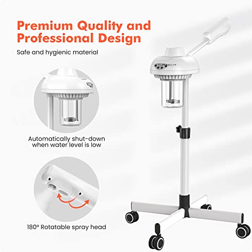 ✅Professional Choice: As a facial steamer for esthetician, 4-leg wheel stand base, easy to move around in the salon.Sturdy base provides good balance during operation or movement.