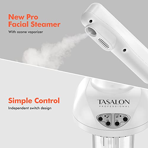 TASALON Professional Facial Steamer on Wheels, Hot Ozone Face Steamer for Facial, Esthetician Steamer for Salon Beauty and Spa, Mist Face Steamer for Facial Deep Cleaning Skin Care Equipment- White