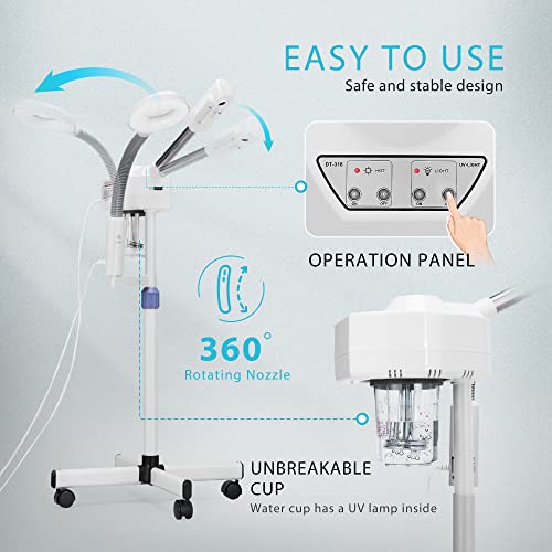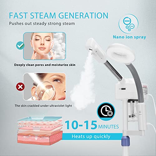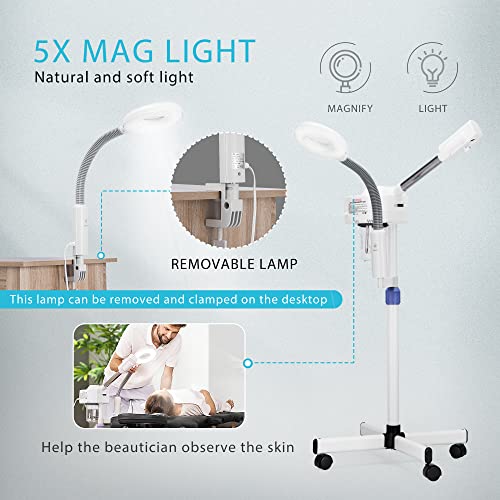 Specification: VIVOHOME Professional Facial Steamer for Esthetician with 5X Magnifying Lamp and Humidifier, 2 in 1 Ionic Face Steamer for Skin Spa for Home and Salon, Portable with Rolling Wheels