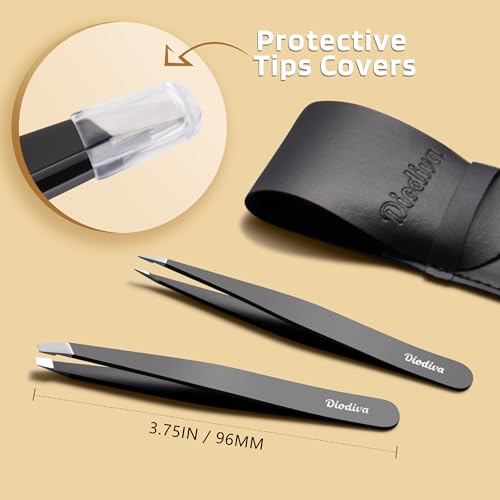 Specification: 2-Pack Tweezers for Eyebrows, Facial Hair, Ingrown Hair Removal, Slant and Point Tip Tweezer Set for Women and Men, Professional Stainless Steel Precision Eyebrow Plucking Grooming with Case – Black