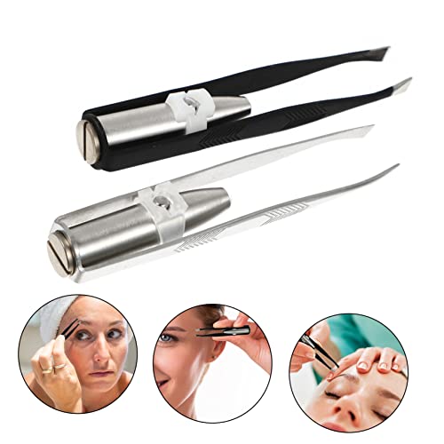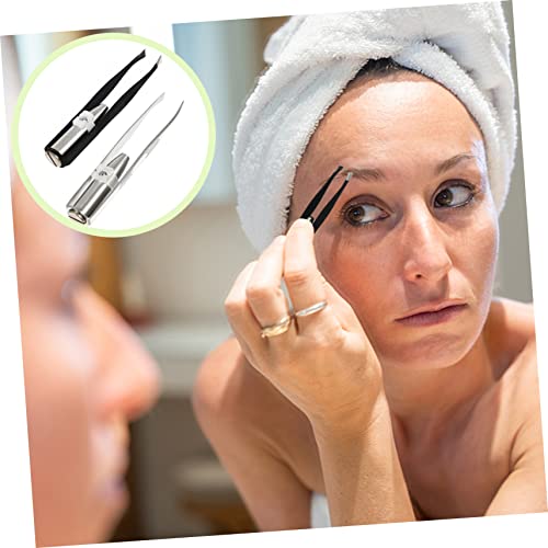 ADOCARN 2pcs Led Light Eyebrow Clip Stainless Steel Lip Razors for Women Face Professional Tweezers Man Shaver Hair Removal Clipper Anti-rust Plucker The Face Travel Pliers