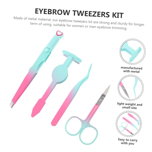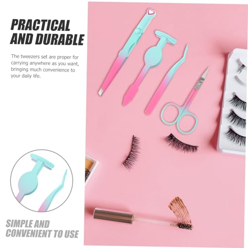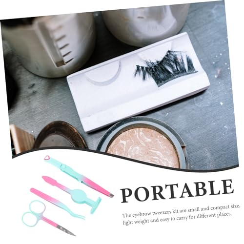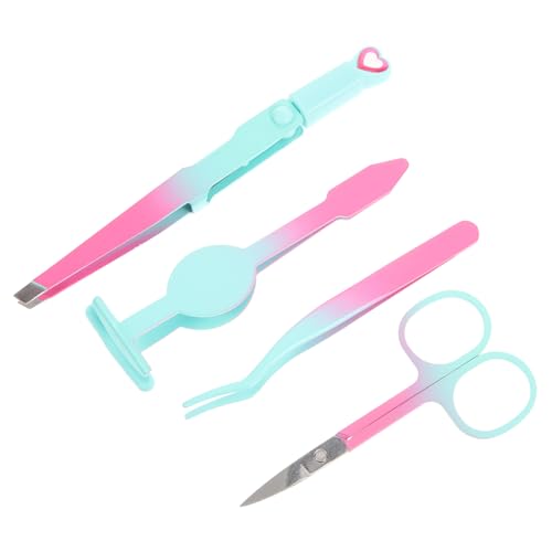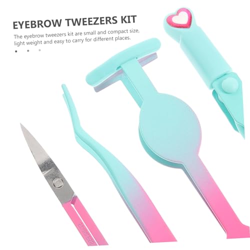 Angoily 1 Set eyebrow brush Auxiliary tweezers for eyebrow Miss facial hair removal tweezers suite Eyelash curler blue pink eyebrow trimming clip Fake eyelashes