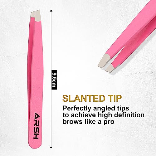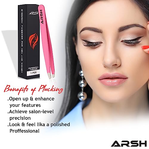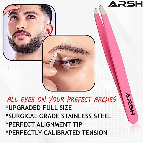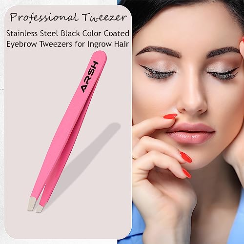 Arsh Eyebrow Professional Tweezers for Facial Hair Women & Men | Stainless Steel Precision Tweezers for Ingrown Hair | Best Tweezers for Eyebrow | Tweezers for Plucking (Pink)