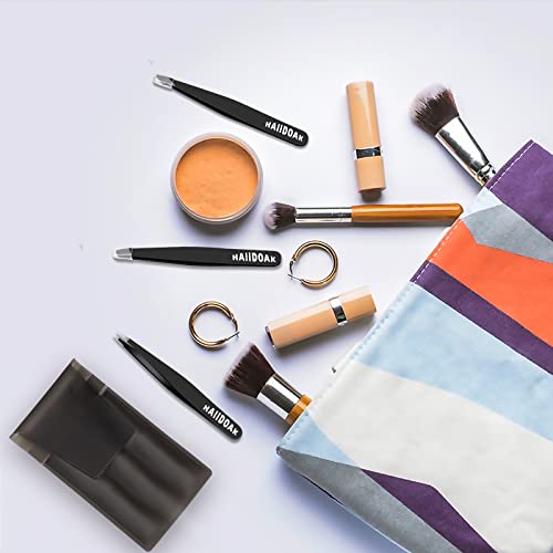 Specification: HAIIDOAK Tweezers Set, Professional Stainless Steel Tweezers for Eyebrows, Great Precision for Facial Hair, Splinter and Ingrown Hair Removal (3 Count / 3.8inch, Black)