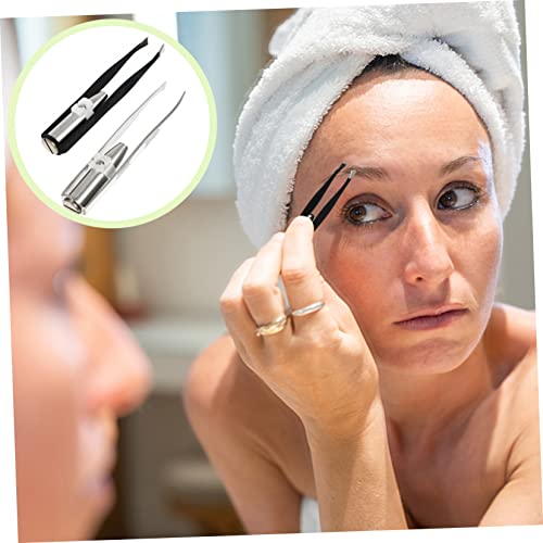 MAGICLULU 2pcs LED Light Eyebrow Clip Eyebrow Pliers Ladies Razors for Shaving Metal Eyebrow Facial Razors for Women Face Trimmers Practical Eyebrow Tweezer Rado Travel Major Stainless Steel