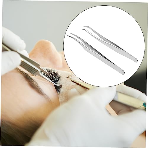 MERRYHAPY 2pcs Eyelash Extension Tweezers Hair Remover Tool Eyebrow Hair Remover Eyebrow Picker Eyebrow Clamps Lash Tweezers Eyelash Grafting Tools Fake Eyelashes Stainless Steel