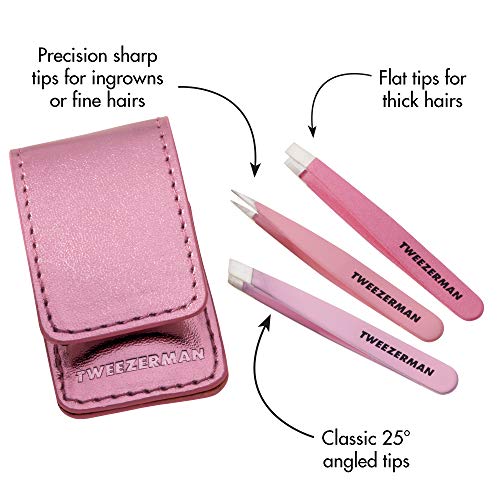 Mini tweezer trio has high-quality stainless steel tips that grab every hair, every time