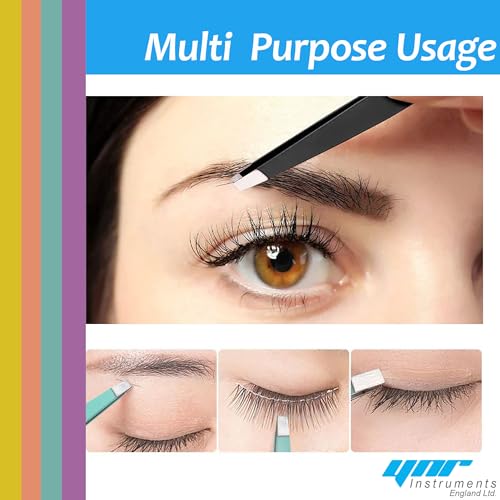 【4 DIFFERENT EYEBROW TWEEZERS FOR VARIOUS USING】4 different professional precision tweezers are included in this kit, range from Slant Tweezer​, Pointed Tweezer, Pointed-Slant Tweezer, Flat Tweezer. They can not only be used for eyebrow shaping, odd stray hairs/chin hairs removing, ingrown hairs/splinter/tick removing, but false lashes and double eyelid affixing, even for craft, jewelry-making, electronics, laboratory work etc.