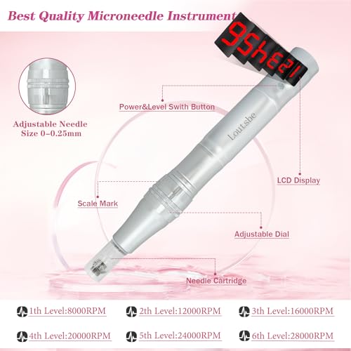 Specification: Loutsbe Cordless Electric Microneedling Pen 28000RPM, Professional Beauty Pen With 30 Pcs Replace Cartridege (12-pins ×10, 36pins×10, nano×10) Beneficial Your Skin Suitable For Use At Home