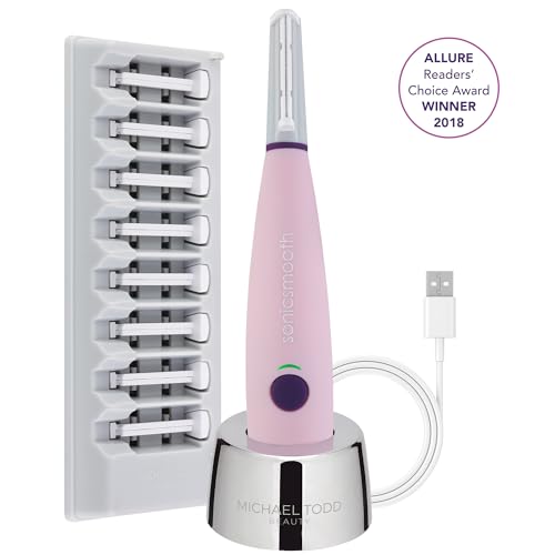 MICHAEL TODD BEAUTY – Sonicsmooth – SONIC Technology Dermaplaning Tool – 2 in 1 Women’s Facial Exfoliation & Peach Fuzz Hair Removal System with 8 Weeks of Safety Edges