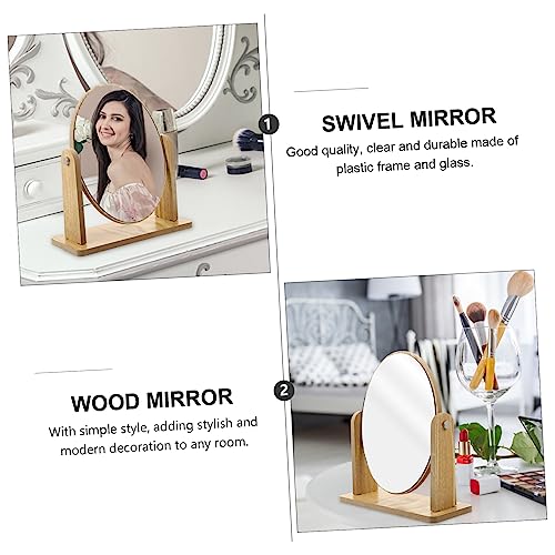 Housoutil Wooden Vanity Mirror Portable Desk Fold Out Desk Makeup Vanity Stool Mirrors Dresser Mirror Swivel Mirror Hanging Circle Mirror Dresser Wooden Round to Rotate Oval Yiwu