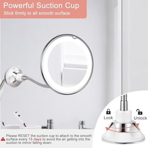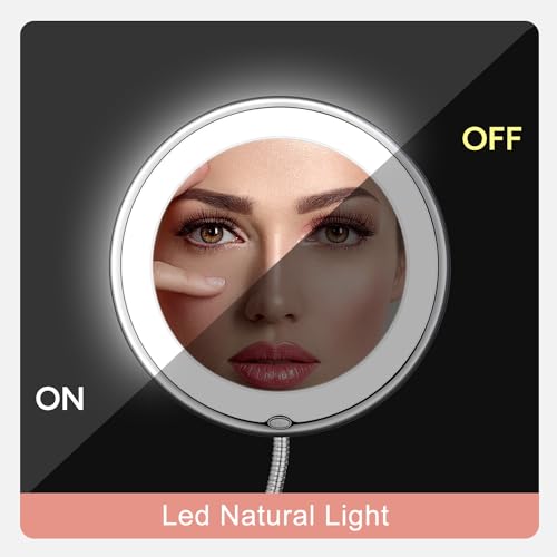 Specification: KEDSUM Flexible Gooseneck 6.8″ 10x Magnifying LED Lighted Makeup Mirror, Bathroom Magnification Vanity Mirror with Suction Cup, 360 Degree Swivel, Daylight, Battery Operated, Cordless & Travel Mirror
