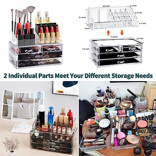 【Vanity Mirror with Lights Set】High value makeup mirror kit include rechargeable lighted makeup mirror, 2 clear drawer organizers, 15pcs makeup brushes with sponge egg. Our mirror with storage set meet most people’s need of mirror, cosmetics organizer and makeup brushes. Non-integration large items, free combination, easy to carry.