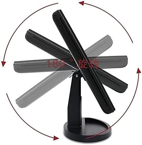 180 degree free rotation: The illumination mirror on the table can be freely adjusted and fixed in a perfect comfortable viewing angle. Tri-fold and detachable design let you carry it with you.