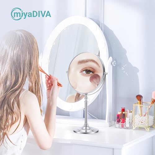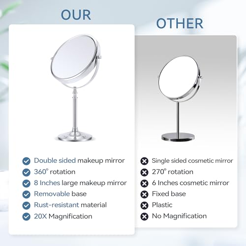 Specification: MIYADIVA Makeup Mirror with 20X Magnification, 20X Magnifying Mirror with Stand, 360°Rotation Desktop Mirror, Tabletop Mirror with 20X Magnification, Double Sided Vanity Mirror for Detail Makeup 8 in