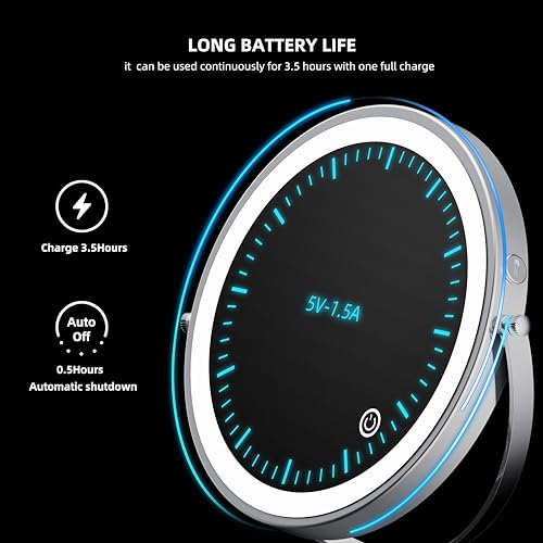 【8 Inch with Double Side 1X/10X】This cosmetic lighted magnified mirror is 8 inch large and double sided with 1X/10X magnification. 1X lighted mirror side is designed for your overall facial makeup while 10X magnifying beauty mirror on the back is designed to show details of your face. When brushing eyeliners, drawing eyebrows, or putting on lipsticks. it’s perfect for you to put on a delicate makeup. Please keep 4 inch distance when use the lighted 10x magnifying mirror to avoid dizziness.