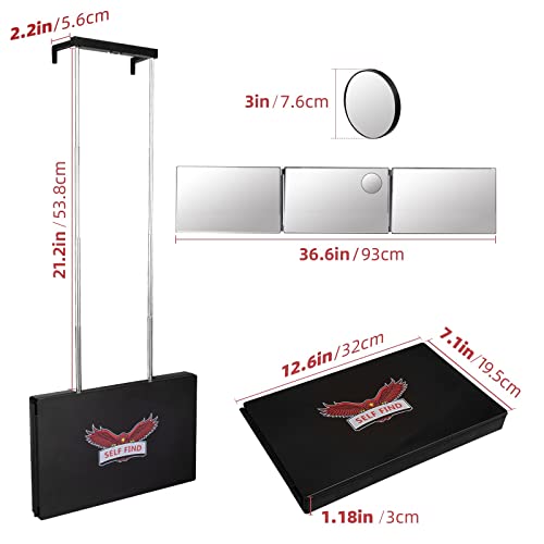SELF FIND 3 Way Mirror for Hair Cutting, 360° Mirror for Haircuts for Men, Barber /Self Cut Mirror with Height Adjustable Telescoping Hooks, and 5X Magnifying for Makeup and Hair Styling