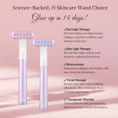 Specification: GlowXtra Skincare Wand – Dual Lights Therapy, Microcurrent Boost, & Effortless Radiance -Red & Blue Lights- Personalize Your Glow with Targeted Results! -Lavender
