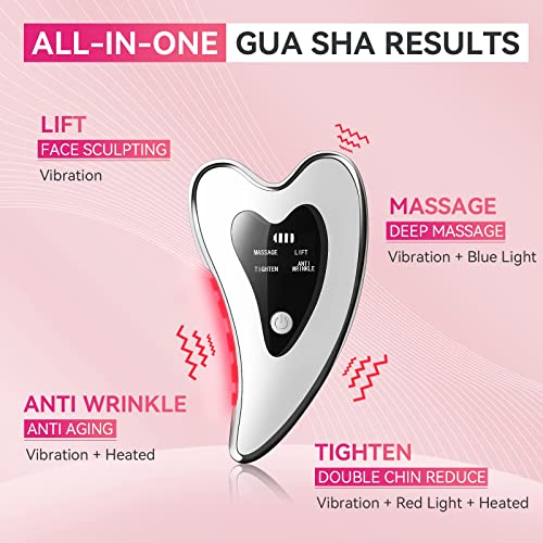 【Facial Massager】This guasha tool for face is so much sturdy and quicker than the ANCIENT face massager made from jade stones or stainless steel. This Face Lift Device offers vibration, heated, blue light and red light therapy for face all in one device. After one use, you’ll be in love with it!