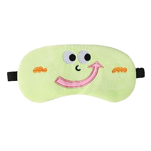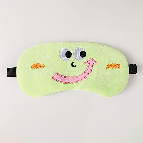 Cartoon ice Eye mask Macaroon Color Embroidery Expression Adjustment Elasticity Shading Eye Protection mask for Kids Men Women Plane Night Sleeping-KC-Green Smile