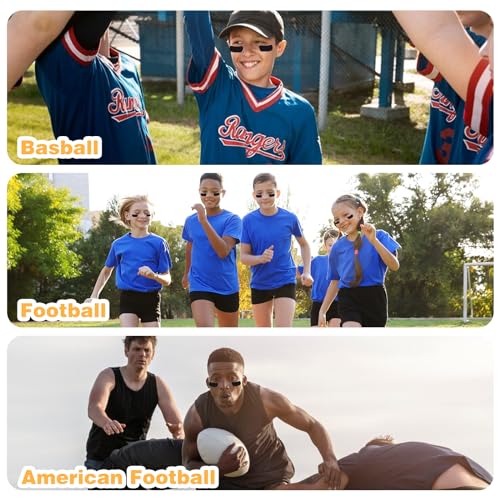 Enhance Focus and Durable: The glare from the sun can be distracting during sports games, but our eye black strips help reduce it, allowing you to focus on the game fully. Made with high-quality materials, these stickers are designed to withstand sweat and other elements, ensuring long-lasting use.