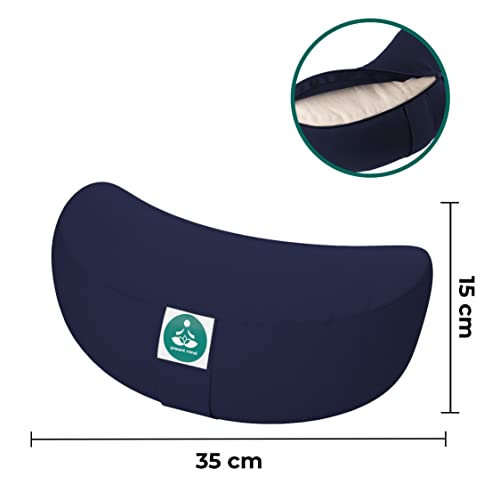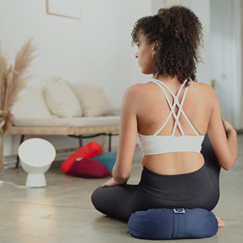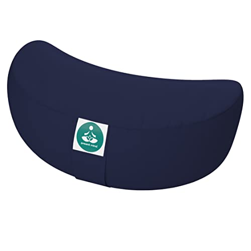 Present Mind (Height 6”) Half Moon Zafu Yoga Bolster for Gymnastics & Meditation Made in the EU with Multivarious Colors – 100% Natural Cotton Crescent Yoga Meditation Buckwheat Cushion with Washable Covers