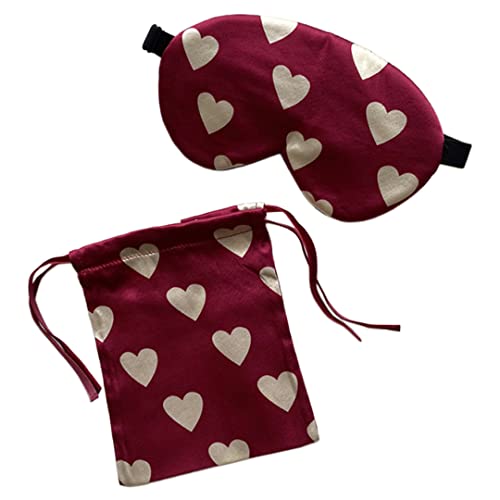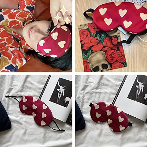 Red Heart Silk Sleep Eye Mask Storage Bag Set Women Adjustable Soft Mulberry Silk Blackout Eye Cover for Yoga Travel Nap Head Mounted