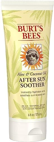 BURT’S BEES AFTER SUN LOTION: Burt’s Bees aloe and coconut oil after sun soother is a non-greasy and fast absorbing lotion; Package may vary