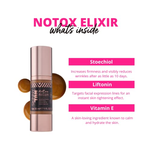 Skinny Tan Notox Beauty Elixir Facial Serum for Self Tanning – Lightweight Gradual Self Tanner for Smoother Looking Skin in Less than One Hour – Hydrating, Anti Aging, Dermatologically Tested – 1 oz