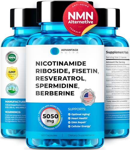Specification: AdvantageNutra NMN Supplement Alternative – Liposomal Nicotinamide Riboside, Fisetin, Resveratrol, Spermidine, Berberine – High Purity NAD Supplement for Anti Aging, Heart & Joint Health 60 Capsules