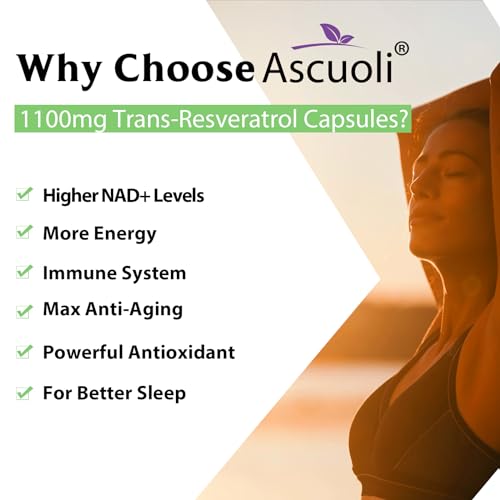 【A Simple & Healthy Routine from Ascuoli】Ascuoli Resveratrol capsules are simple addition to your health routine. Easily to carry & swallow, Take 2 capsules daily, for you health and highest levels of NAD+, keep your body and your mind at PEAK condition. Ascuoli Trans-Resveratrol provide you with the BEST supplement. -18