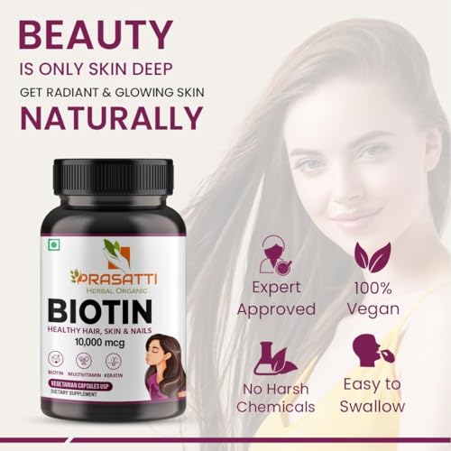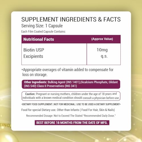 HEALTHY & GLUTEN-FREE : We promote sustainability, and every product is made after extensive research & development. These capsules are no exception. The product is free from artificial colors, binders, chemicals, synthetic elements, and chemicals. Not just that, it is gluten-free and does not contain eggs, milk, fish, and shellfish. A must-have product to enhance your overall beauty & wellness. Biotin is a water-soluble vitamin that acts as a coenzyme in the metabolism of proteins, fats and carbohydrates