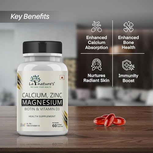 Nurtures Radiant Skin: LA NATURE’S Calcium Magnesium Zinc and Biotin Soft gels could safeguard hair, nails, and skin against UV damage, promoting healthy radiance.