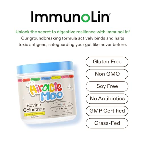 🐄 MIRACLE MOO PREMIUM COLOSTRUM: Experience our remarkable colostrum powder with an extraordinary IgG content and ImmunoLin IgGs, vital immunoglobulins, profoundly enhance immunity, fortify the gut, and foster holistic well-being. Embrace utmost quality and scientific validation with our elite colostrum, a promise of proven outcomes