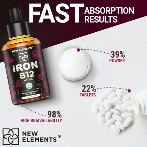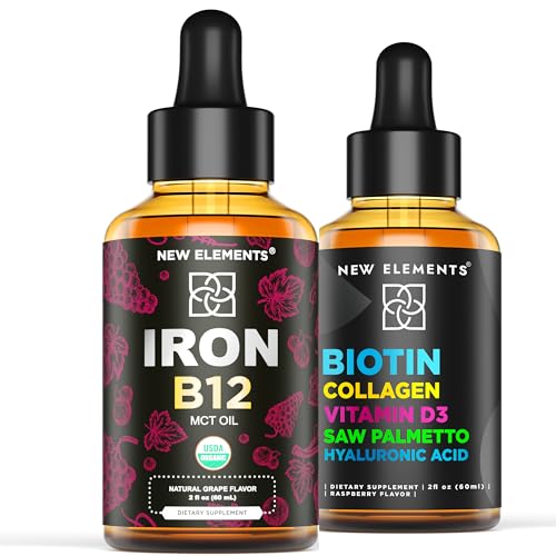 Liquid Iron Supplement for Women & Men with Vitamin B12 | Liquid Biotin Drops with Collagen Vitamin D3 Saw Palmetto & Hyaluronic Acid for Hair Skin and Nails, Hair Growth Supplement