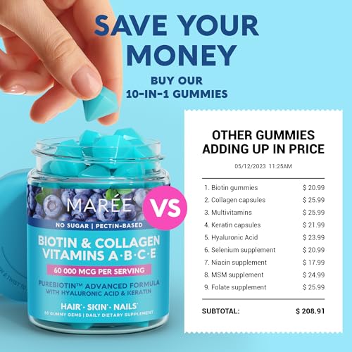 Specification: MAREE Vitamin B1 Thiamine & B7 Biotin Gummies – A E D C Vitamins Complex with Keratin, Collagen, Hyaluronic & Pantothenic Acid for Skin, Nails & Hair